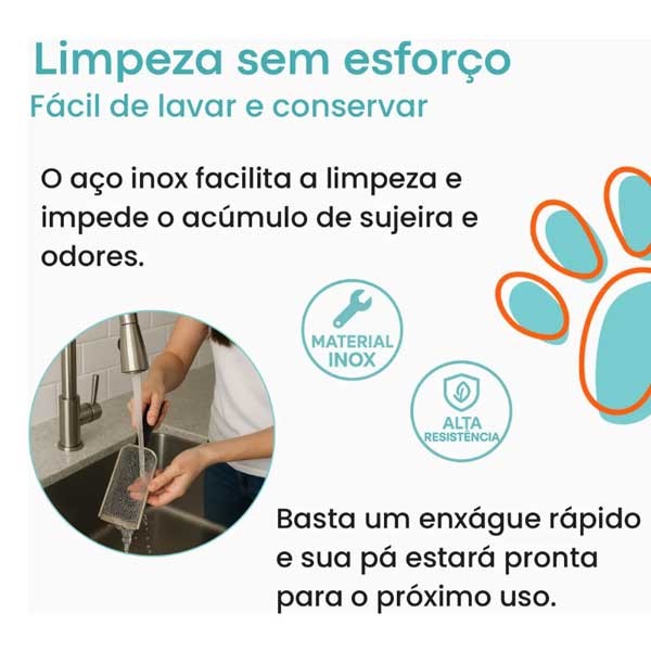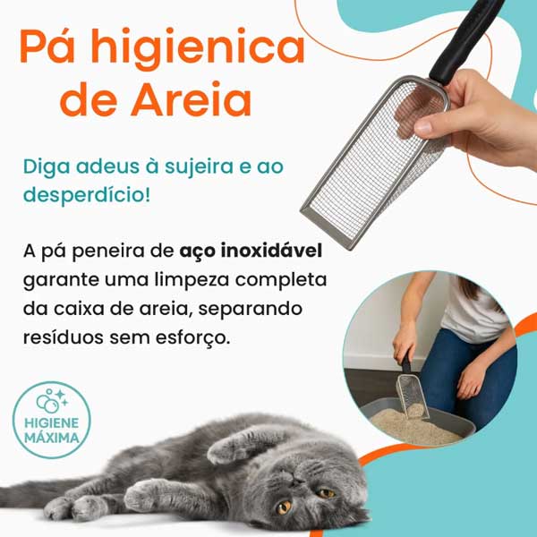 Com a Pá Higiênica Inox, você garante higiene máxima, economia de areia e praticidade diária na rotina do seu gato.