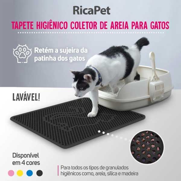 O Tapete Higiênico Para Gato Coletor De Areia foi feito para que esse problema fosse resolvido, após você colocar o Tapete Higiênico Para Gato Coletor De Areia na frente da caixa de areia do seu gatinho, ao pisar no tapete existe o contato com a patinha e faz com que a areia fique no tapete e as aberturas na parte superior do tapete faz com que a areia fique dentro do tecido abaixo, podendo até reutilizar a areia Posteriormente.